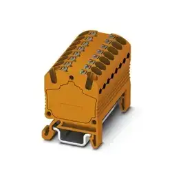 Distribution block – PTFIX 16X1,5-NS15A OG – 3002951; Distribution block, bridged internally, The blocks can be bridged with one another via the conductor shaft. For corresponding plug-in bridges, see accessories, nom. voltage: 500 V, nominal current: 17.5 A, connection method: Push-in connection, number of connections: 16, cross section: 0.14 mm² – 1.5 mm², AWG: 26 – 16, width: 33.6 mm, color: orange, mounting type: NS 15