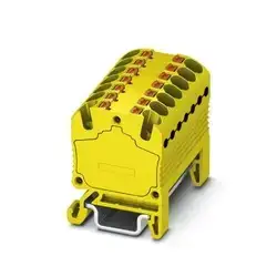 Distribution block – PTFIX 14X1,5-NS15A YE – 3002959; Distribution block, bridged internally, The blocks can be bridged with one another via the conductor shaft. For corresponding plug-in bridges, see accessories, nom. voltage: 500 V, nominal current: 17.5 A, connection method: Push-in connection, number of connections: 14, cross section: 0.14 mm² – 1.5 mm², AWG: 26 – 16, width: 29.4 mm, color: yellow, mounting type: NS 15