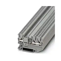 Feed-through terminal block – DT 2,5-TWIN – 3034086; Feed-through terminal block, nom. voltage: 800 V, nominal current: 24 A, connection method: Leg spring connection, number of connections: 3, cross section: 0.2 mm² – 4 mm², AWG: 24 – 12, width: 5.2 mm, color: gray, mounting type: NS 35/7,5, NS 35/15