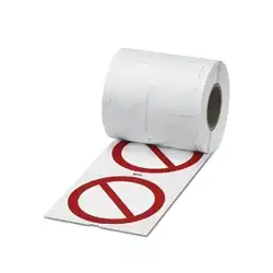 Prohibition sign – PML-P100 (D100)R – 1014226; Prohibition sign, Roll, red/white, pre-printed, can be labeled with: THERMOMARK ROLLMASTER 300/600, THERMOMARK X1.2, THERMOMARK ROLL X1, THERMOMARK ROLL 2.0, THERMOMARK ROLL, mounting type: adhesive, diameter: 100 mm, lettering field size: d: 100 mm